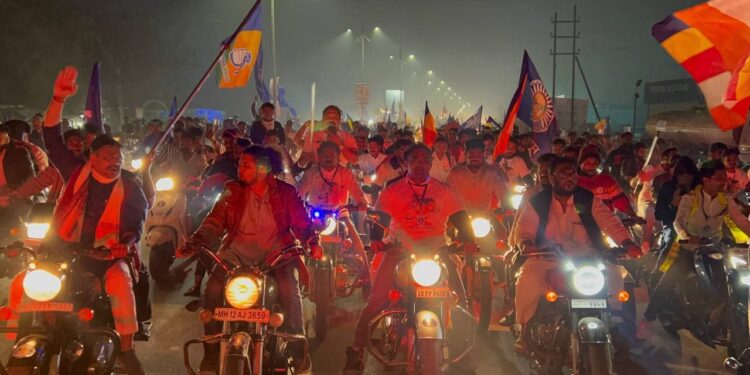 पुणे: वंचित बहुजन आघाडीचे युवा नेते सुजात आंबेडकर यांच्या नेतृत्वात वंचित बहुजन युवा आघाडीने शौर्य दिनाच्या निमित्ताने पुणे स्टेशन ते भीमा कोरेगाव अशा भव्य बाईक रॅलीचे आयोजन केले होते. या रॅलीत हजारो युवक आणि युवतींनी सहभाग घेतला होता.
