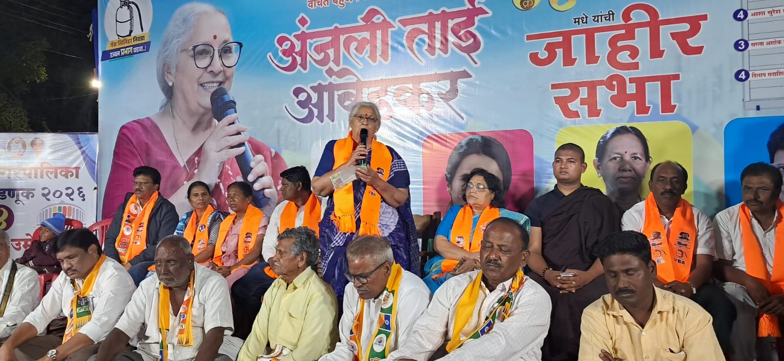 अकोला : अकोला शहरातील प्रभाग 4 मध्ये वंचित बहुजन आघाडीच्या उमेदवारांसाठी जोरदार प्रचार सभा आयोजित करण्यात आली. या कार्यक्रमात वंचित बहुजन आघाडीच्या राष्ट्रीय नेत्या प्रा. अंजलीताई आंबेडकर प्रमुख पाहुण्याच्या रूपात उपस्थित होत्या.