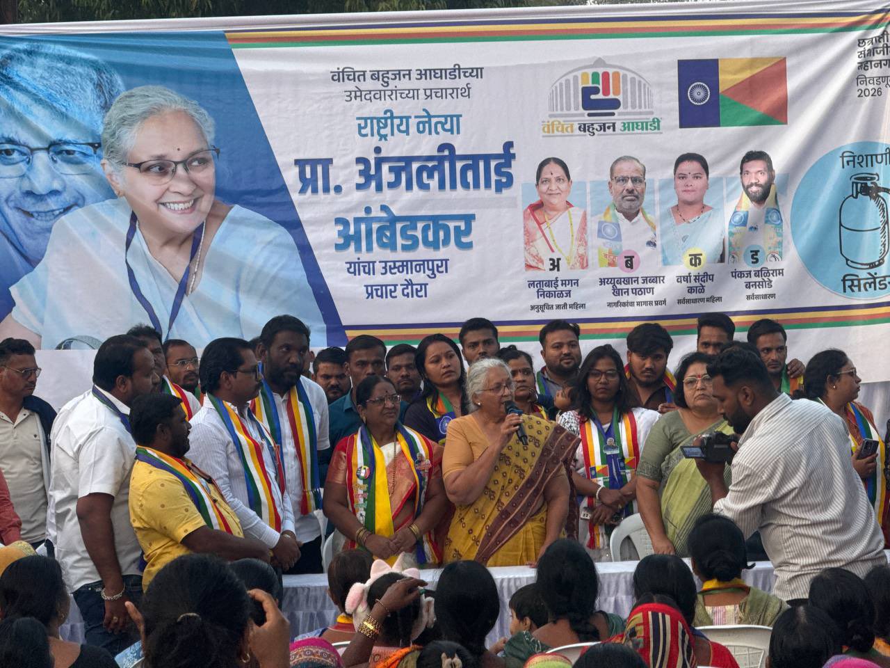 उस्मानपुरा परिसरातील प्रभाग क्रमांक २८ च्या अधिकृत उमेदवारांच्या प्रचारार्थ आयोजित करण्यात आलेल्या जाहीर सभेत नागरिकांनी मोठी गर्दी केली होती. वंचित बहुजन आघाडीच्या राष्ट्रीय नेत्या प्रा. अंजलीताई आंबेडकर यांनी या सभेमधून स्थानिक प्रश्नांवरून प्रशासनावर हल्लाबोल केला.