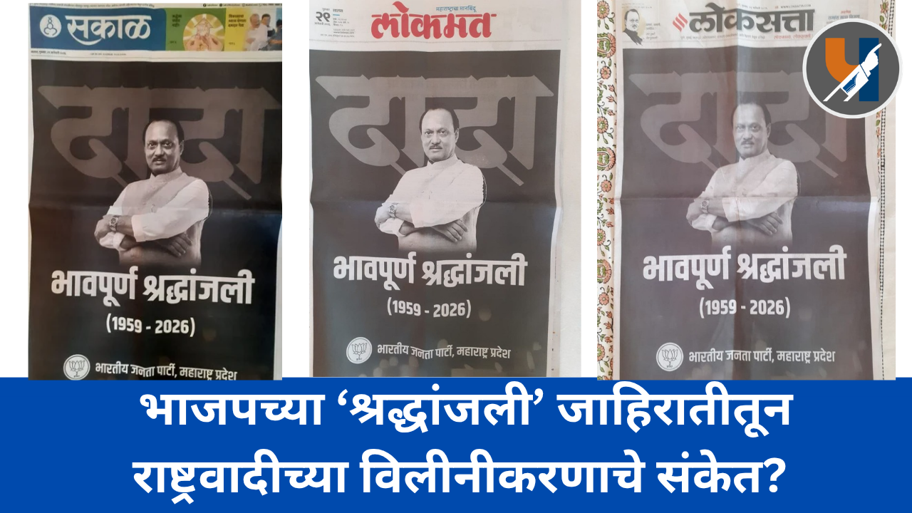 विशेष म्हणजे, ज्या दिवशी अजित पवार यांचे अपघाती निधन झाले, त्या दिवशी त्यांच्या स्वतःच्या राष्ट्रवादी काँग्रेस पक्षाने अशा स्वरूपाच्या मोठ्या जाहिराती दिल्या नव्हत्या. मात्र, भाजपने दाखवलेली ही ‘तत्परता’ अनेकांना बुचकळ्यात टाकणारी ठरली आहे.