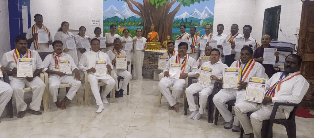 मागील बौद्धाचार्य प्रशिक्षण शिबिरातील शिबिरार्थ्यांनी ९ नोव्हेंबर २०२५ रोजी परीक्षा दिली होती. त्यापैकी २२ परीक्षार्थी नवी मुंबई जिल्हा केंद्रातून उत्तीर्ण झाले होते. केंद्रिय प्रशिक्षण विभागाकडून प्राप्त झालेली प्रमाणपत्रे यावेळी नवनियुक्त बौद्धाचार्यांना वितरित करण्यात आली. (Navi Mumbai)