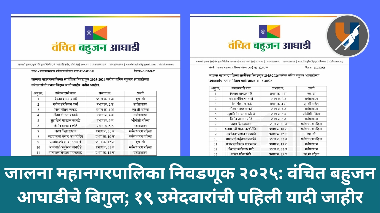 जालना महानगरपालिका निवडणूक २०२५: वंचित बहुजन आघाडीचे बिगुल; १९ उमेदवारांची पहिली यादी जाहीर