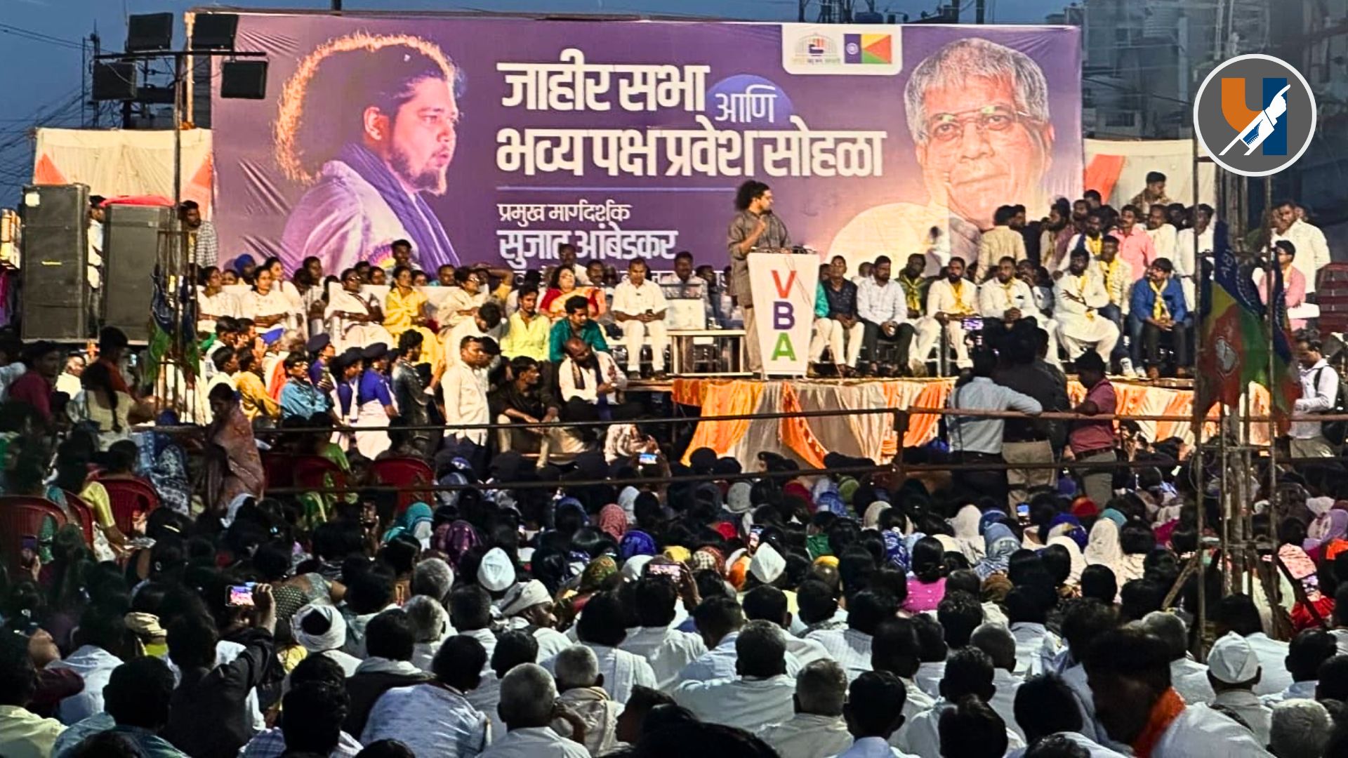 हिंगोली : वंचित बहुजन आघाडीचे युवा नेते सुजात आंबेडकर यांच्या प्रमुख मार्गदर्शनाखाली हिंगोली येथील संविधान कॉर्नर, महात्मा गांधी चौक येथे आयोजित करण्यात आलेल्या जाहीर सभेला आणि पक्षप्रवेश सोहळ्याला हिंगोलीकरांनी प्रचंड गर्दी करत मोठा प्रतिसाद दिला. या जनसमुदायाच्या उपस्थितीत शेकडो युवकांनी सुजात आंबेडकर यांच्या हस्ते वंचित बहुजन आघाडीमध्ये प्रवेश करत पक्षाची ताकद वाढवली.