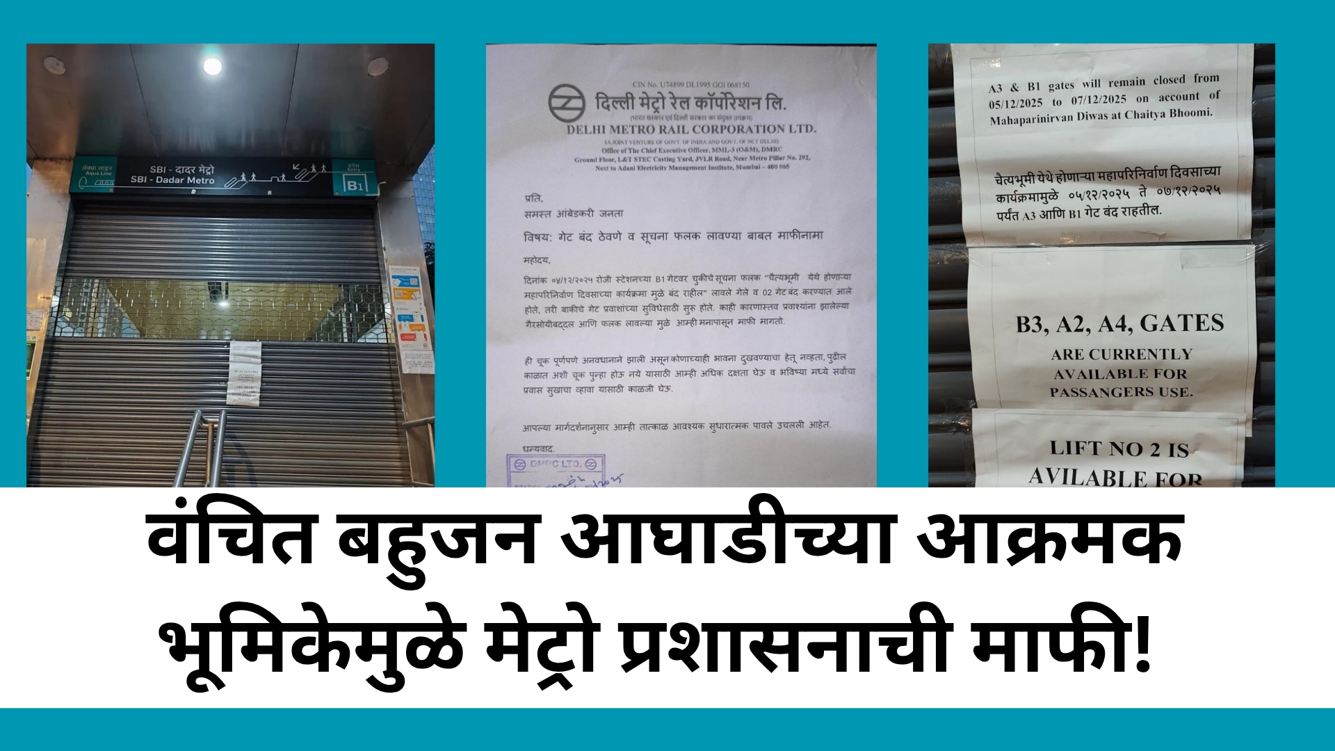 महापरिनिर्वाण दिनामुळे मेट्रोचे गेट बंद; वंचित बहुजन आघाडीच्या आक्रमक भूमिकेमुळे मेट्रो प्रशासनाची माफी!