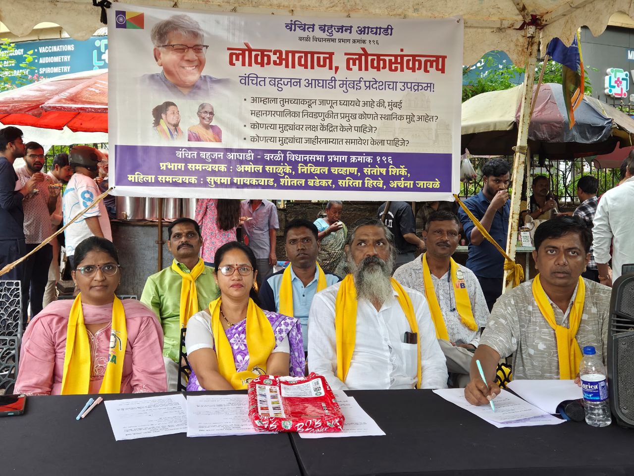 मुंबई : वंचित बहुजन आघाडीच्या वतीने आज प्रभाग क्र. १९६ वरळी विधानसभा क्षेत्रात “लोक आवाज – लोक संकल्प” हा जनसंपर्क उपक्रम मोठ्या उत्साहात राबविण्यात आला. या उपक्रमाचा उद्देश स्थानिक नागरिकांच्या समस्या, अडचणी आणि प्रभागातील विविध त्रासदायक मुद्दे जाणून घेणे असा होता. नागरिकांनी फॉर्म भरून आपल्या तक्रारी, सूचना व अपेक्षा मांडल्या.