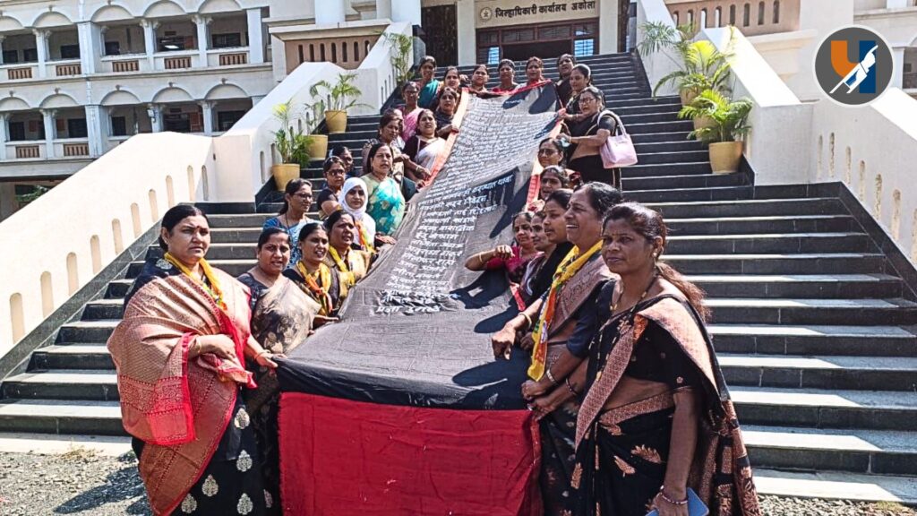 अकोला : फलटण येथील डॉ. संपदा मुंडे आत्महत्या (हत्या) प्रकरणाच्या अनुषंगाने, मुंबईतील वंचित बहुजन महिला आघाडीच्या पदाधिकाऱ्यांना पोलीस प्रशासनाकडून मिळालेल्या अपमानजनक वागणुकीचा निषेध करत, अकोला येथील वंचित बहुजन महिला आघाडीने अनोख्या पद्धतीने मोर्चा काढला आणि जिल्हाधिकारी साहेबांना निवेदन दिले.