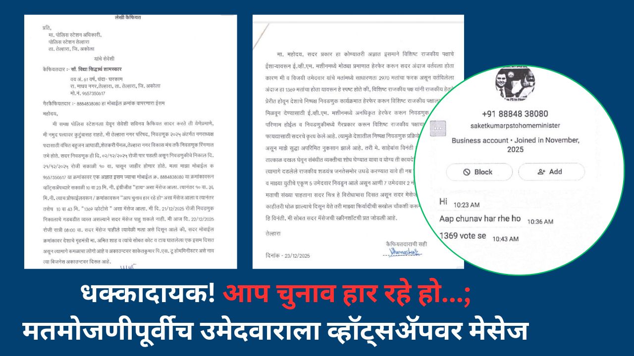 धक्कादायक! आप चुनाव हार रहे हो…; मतमोजणीपूर्वीच उमेदवाराला व्हॉट्सअ‍ॅपवर मेसेज