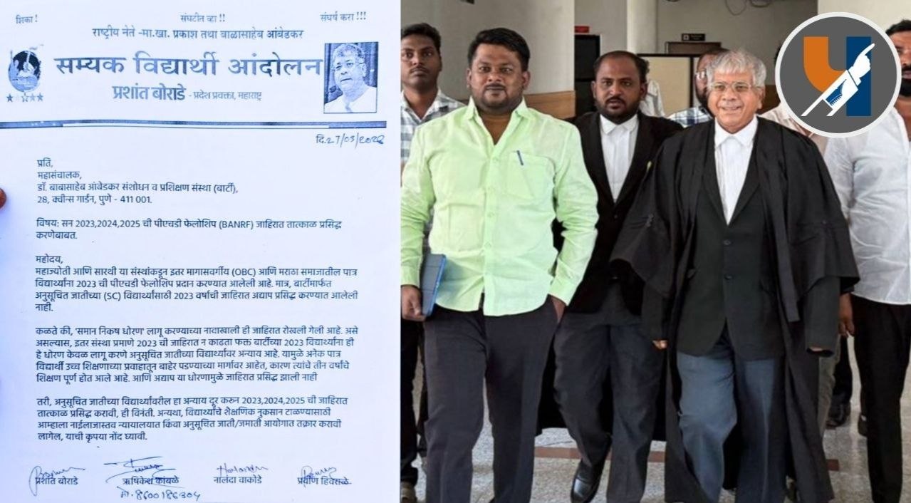 पुणे: डॉ. बाबासाहेब आंबेडकर संशोधन व प्रशिक्षण संस्था (बार्टी) मार्फत देण्यात येणारी सन २०२३, २०२४ आणि २०२५ ची पीएचडी फेलोशिप (BANRF) जाहिरात अद्याप प्रसिद्ध न झाल्याने अनुसूचित जातीच्या विद्यार्थ्यांमध्ये तीव्र संताप व्यक्त होत आहे. यासंदर्भात सम्यक विद्यार्थी आंदोलनाच्या वतीने बार्टीच्या महासंचालकांना निवेदन देण्यात आले असून, जाहिरात तत्काळ प्रसिद्ध न झाल्यास कायदेशीर मार्गाने लढा देण्याचा इशारा देण्यात आला आहे. (BARTI PhD Fellowship)