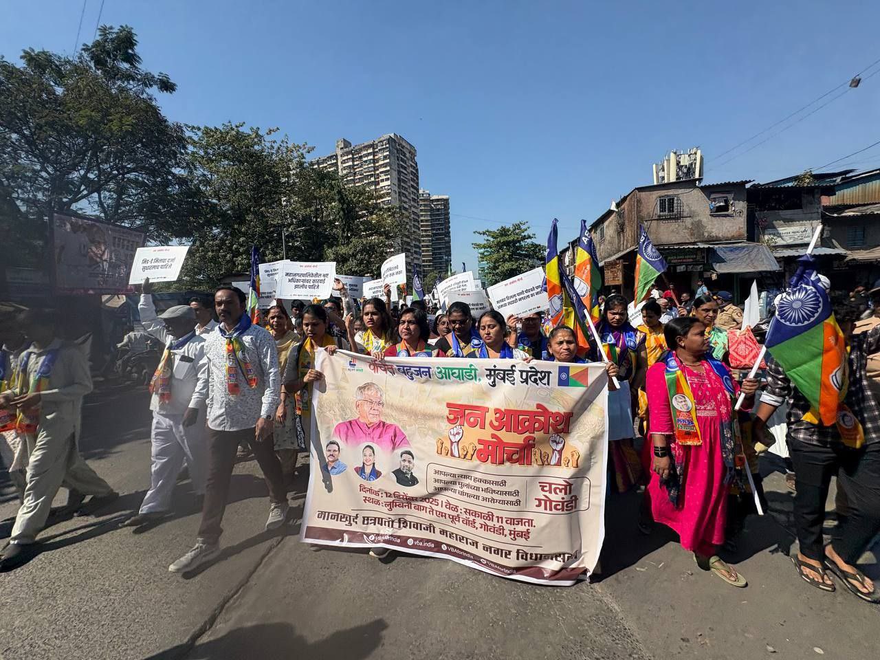 मुंबई : गोवंडी परिसरात नागरिकांच्या विविध समस्या आणि एम वॉर्डमधील प्रलंबित प्रश्नांकडे प्रशासनाचे लक्ष वेधण्यासाठी वंचित बहुजन आघाडी, मुंबई प्रदेशच्या वतीने आज ‘जन आक्रोश मोर्चा’ काढण्यात आला.या मोर्चानंतर वंचित बहुजन आघाडीच्या शिष्टमंडळाने प्रशासनाला लेखी निवेदन सादर केले.
