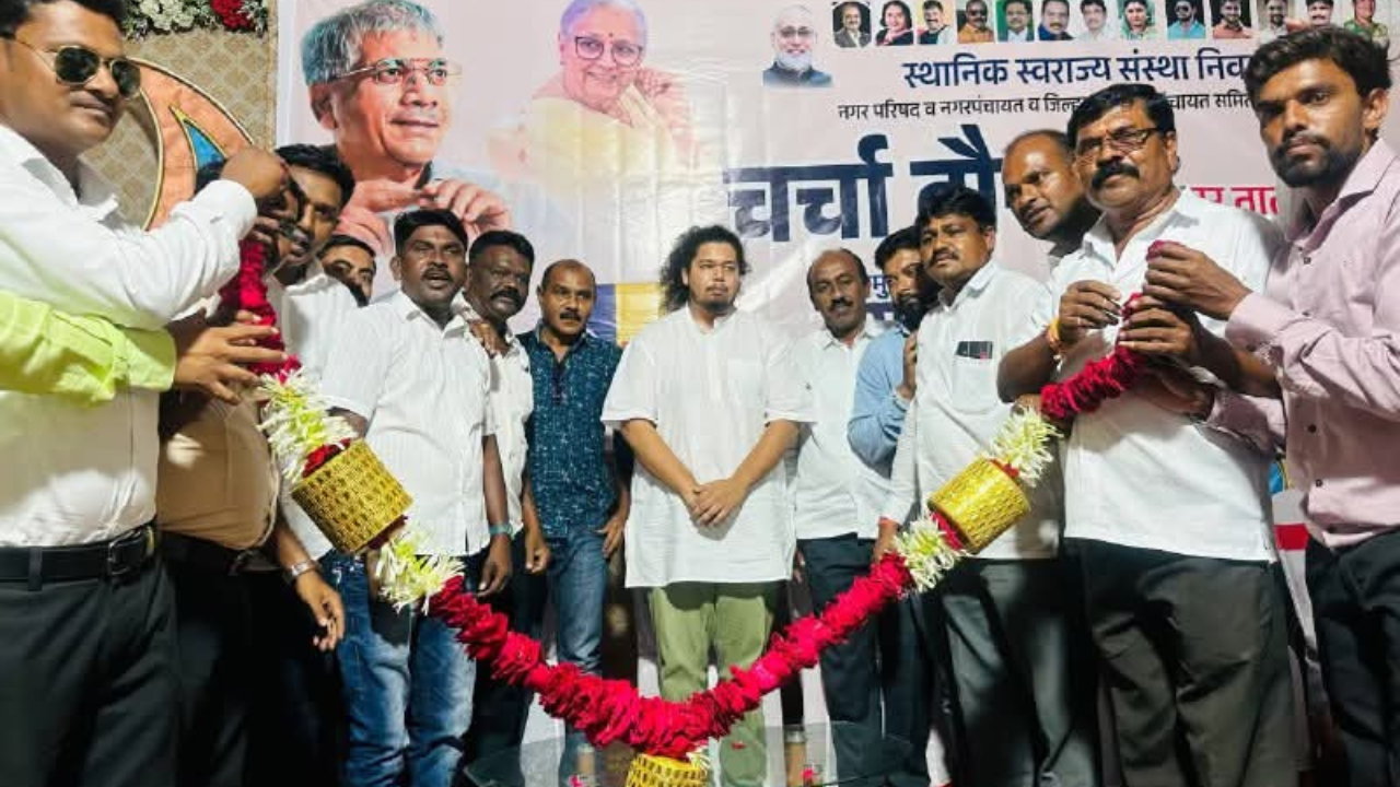 मुर्तिजापूर : आगामी स्थानिक स्वराज्य संस्थांच्या निवडणुकीत विजयाचा निर्धार करण्यासाठी वंचित बहुजन आघाडीने अकोला जिल्ह्यात ‘चर्चा दौरा’ सुरू केला आहे. याच दौऱ्याअंतर्गत मुर्तिजापूर येथे पक्षाचे युवा नेते सुजात आंबेडकर यांच्या प्रमुख मार्गदर्शनाखाली चर्चा आणि मार्गदर्शन सत्र आयोजित करण्यात आले होते. निवडणूक प्रचार यंत्रणेचा प्रभावी वापर करण्यावर आणि वंचित बहुजन आघाडीचे कार्य तळागाळातील लोकांपर्यंत पोहोचवण्यावर या चर्चा दौऱ्यात भर देण्यात आला.