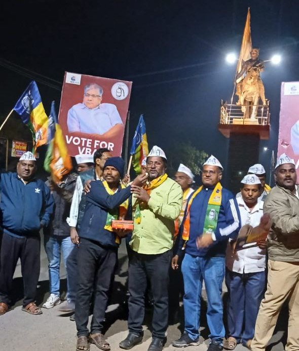महापुरुषांना अभिवादन करून कार्यक्रमाची सुरुवातकार्यक्रमाची सुरुवात अत्यंत उत्साहात झाली. प्रारंभी चौकातील विश्वरत्न डॉ. बाबासाहेब आंबेडकर आणि छत्रपती शिवाजी महाराज यांच्या पुतळ्याला पुष्पहार अर्पण करून विनम्र अभिवादन करण्यात आले. त्यानंतर ‘जय भीम’ आणि ‘वंचित बहुजन आघाडीचा विजय असो’ अशा घोषणांनी परिसर दणाणून गेला होता.