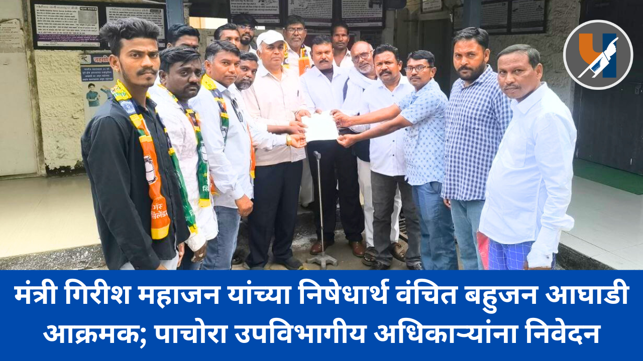 पाचोरा: प्रजासत्ताक दिनाच्या कार्यक्रमात भारतीय संविधानाचे शिल्पकार डॉ. बाबासाहेब आंबेडकर यांचा नामोल्लेख टाळल्याचा, वंचित बहुजन आघाडी पाचोरा तालुक्याच्या वतीने मंत्री गिरीश महाजन यांचा जाहीर निषेध करण्यात आला. यासंदर्भात पाचोरा उपविभागीय अधिकाऱ्यांना निवेदन सादर करून मंत्र्यांनी जाहीर माफी मागावी, अशी मागणी करण्यात आली आहे. (Girish Mahajan controversy)