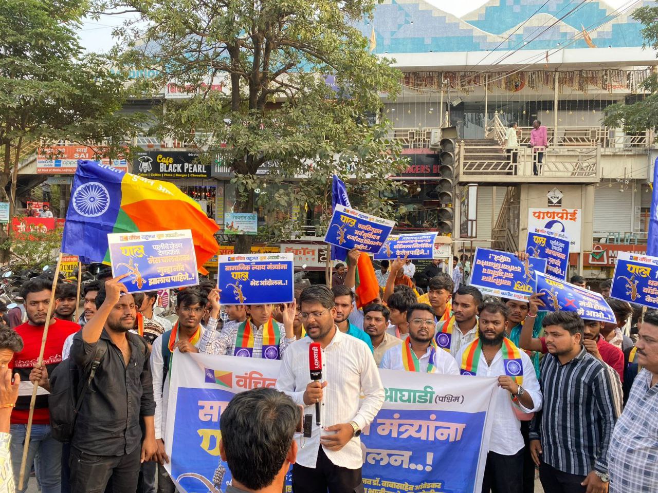 पुणे : डॉ. बाबासाहेब आंबेडकर वस्तीगृहात 25 नोव्हेंबर रोजी घडलेल्या धक्कादायक घटनेच्या पार्श्वभूमीवर वंचित बहुजन युवा आघाडी (पश्चिम) तर्फे सामाजिक न्याय मंत्री संजय शिरसाठ यांच्या कार्यालयासमोर ‘पाल भेट आंदोलन’ करण्यात आले.