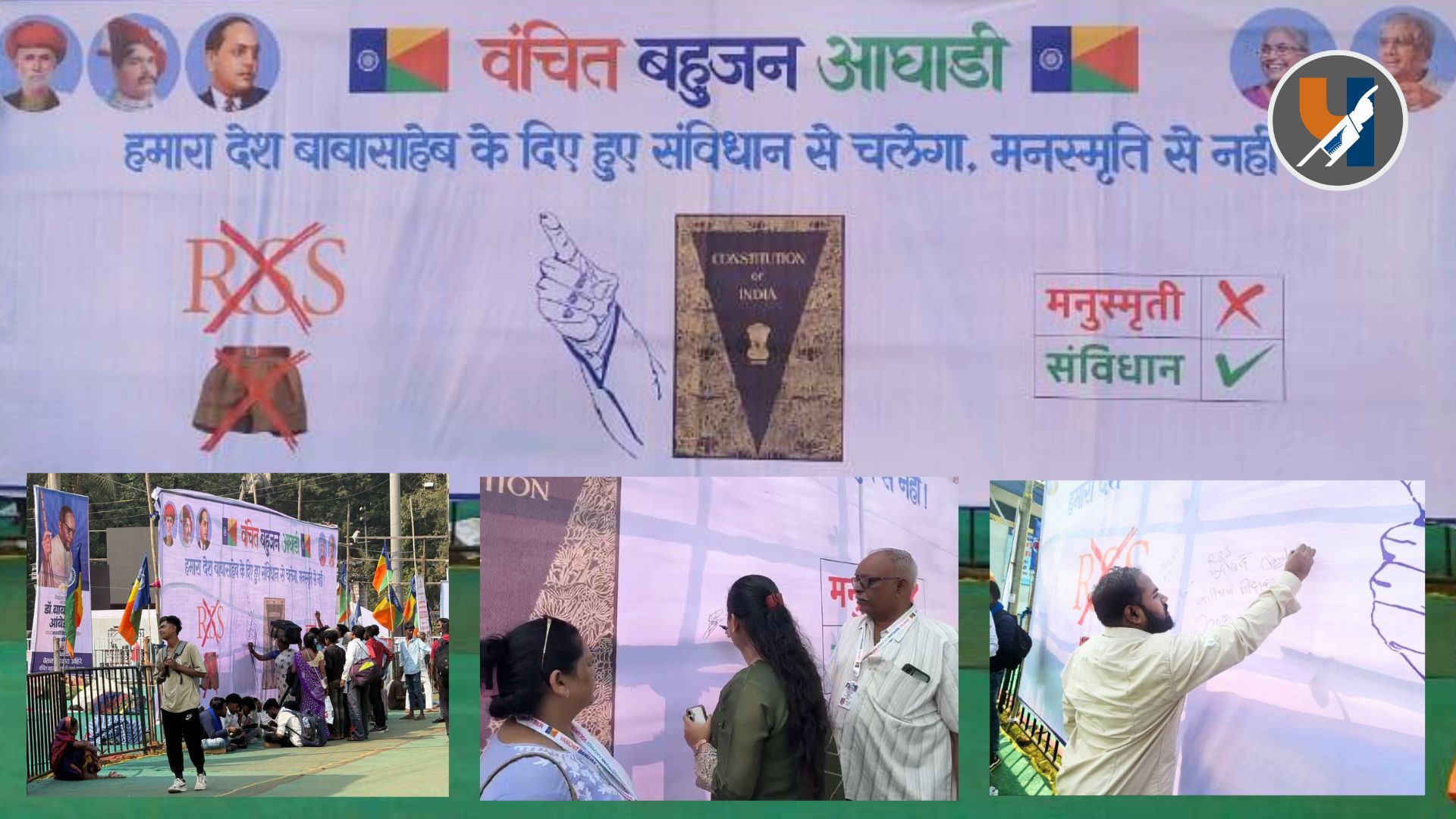 मुंबई : महापरिनिर्वाण दिनानिमित्त चैत्यभूमी, मुंबई येथे डॉ. बाबासाहेब आंबेडकर यांना अभिवादन करण्यासाठी आलेल्या अनुयायांनी वंचित बहुजन आघाडीच्या (VBA) स्वाक्षरी मोहिमेत (Sign Campaign) सक्रिय सहभाग घेतला. या माध्यमातून त्यांनी राष्ट्रीय स्वयंसेवक संघ (RSS) आणि मनुवादी विचारसरणीच्या लोकांना ही स्पष्ट चेतावणी दिली आहे की, “आमचा देश बाबासाहेबांनी दिलेल्या संविधानानुसार चालेल, मनुस्मृतीनुसार नाही.”