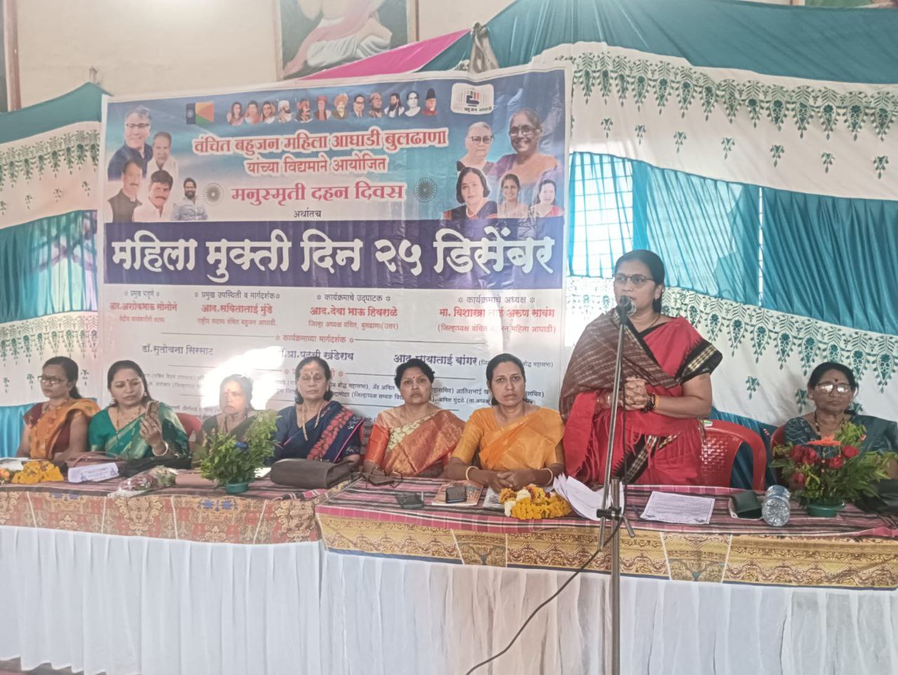 बुलढाणा : बुलढाणा जिल्हा महिला आघाडीच्या वतीने नांदुरा येथे ‘महिला मुक्ती दिन’ मोठ्या उत्साहात साजरा करण्यात आला. या कार्यक्रमाच्या माध्यमातून महिलांच्या हक्क आणि अधिकारांबाबत जनजागृती करण्यात आली.